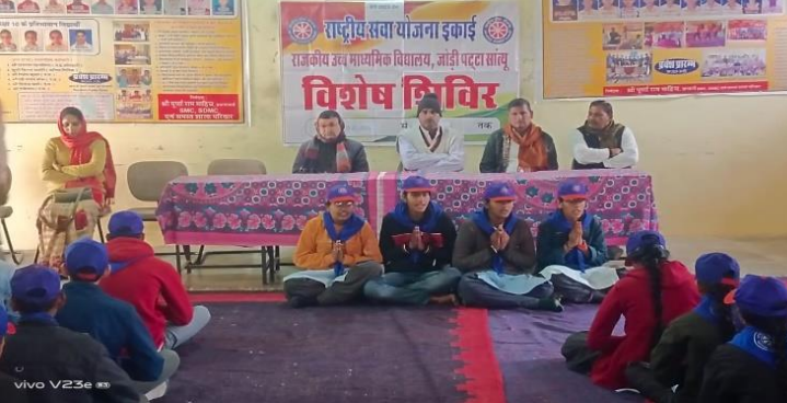 चूरू | राजकीय उच्च माध्यमिक विद्यालय जोड़ी पट्टा सात्युं की राष्ट्रीय सेवा योजना+2 इकाई द्वारा पर्यावरण सहित सांस्कृतिक (ऐतिहासिक विरासत का संरक्षण, स्वास्थ्य, सार्वजनिक एवं व्यक्तिगत स्वच्छता थीम पर आधारित सात दिवसीय विशेष शिविर का प्रारंभ गोद ली गई बस्ती जोड़ी पट्टा लोहसणा में किया गया। उद्घाटन सत्र में कार्यक्रम की शुरुआत माँ सरस्वती की वंदना और दीप प्रज्ज्वलन के साथ हुई। उद्घाटन कार्यक्रम में मुख्य अतिथि के रूप में पंचायत समिति सदस्य लक्ष्मण पूरी विशिष्ट अतिथि के रूप गोपाल सिंह राठौड़, एवं पूर्व पंचायत समिति सदस्य रामचन्द्र धाणक तथा अध्यक्षता उपप्राचार्य संजय कुमार शर्मा ने की। संजय कुमार शर्मा ने राष्ट्रीय सेवा योजना +2 के उद्देश्यों एवं स्वयंसेवकों के दायित्वों पर प्रकाश डाला। विशिष्ट अतिथि गोपाल सिंह राठौड़, ने अपने उद्बोधन में NSS की विद्यालयों में आवश्यकता पर अपने विचार व्यक्त किए। उद्घाटन सत्र के बाद दो घण्टे स्वयंसेवकों ने गोद ली गई बस्ती में स्थित श्री नेतजी महाराज के मन्दिर और वहां पर स्थित सक्षम पुस्तकालय के परिसर में बड़े अच्छे ढंग से श्रमदान किया। श्रमदान का कार्य स्वयंसेवकों ने दो दल के रूप में किया।