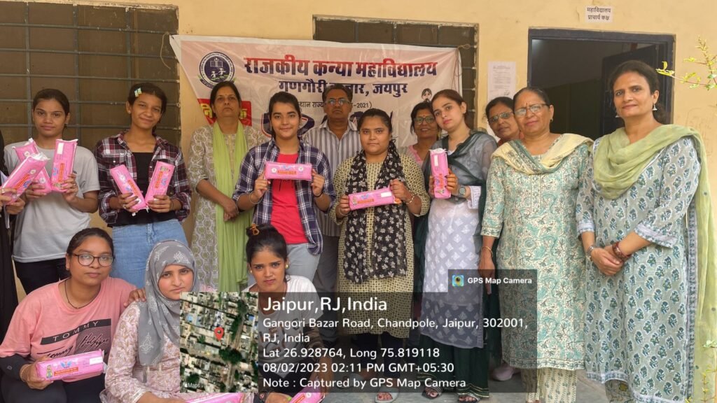 जयपुर | शहर के राजकीय कन्या महाविद्यालय गणगौरी बाजार, जयपुर में राज्य सरकार की फ्लैगशिप योजनाओं में उड़ान योजना के तहत छात्राओं को सेनेटरी नैपकिन का वितरण प्राचार्य डॉ. प्रहलाद सहाय बुनकर एवं महिला नीति समन्वयक डॉ. सुलोचना शर्मा के नेतृत्व में किया गया।