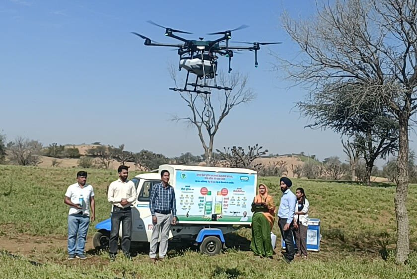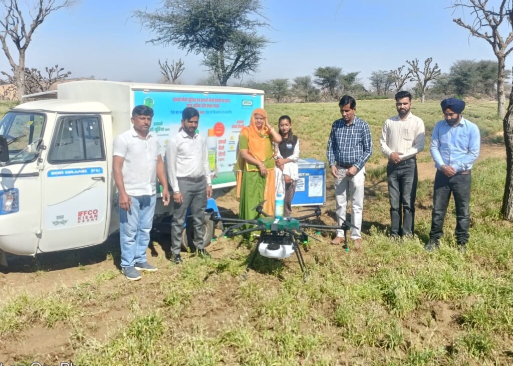 सरदारशहर | सरकार किसानों को कम लागत में ज्यादा पैदावार के मकसद से किसानों की आय दुगुनी करने के लिए केंद्र सरकार की मनसा अनुसार चूरू जिले में इफको के द्वारा 14 लाख रूपयों का पहला ड्रोन कल्याणपुरा गांव की कविता राजपुरोहित को दिया गया। गुरूवार को इफको के द्वारा पहले दिन प्रशिक्षण के रूप में किसानों के साथ मिलकर खेतों में ड्रोन के माध्यम से नैनो यूरिया व तरल सांगरिका की खेत में स्प्रे की गई।