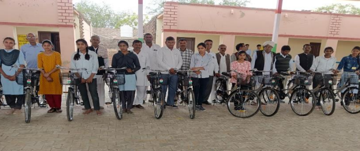 चूरू | राजकीय उच्च माध्यमिक जोड़ी पट्टा सात्यु में आयोजित समारोह में शिक्षा सत्र 2022- 2023 में कक्षा- 9 नियमित अध्ययनरत 27 विद्यालय जोड़ी बालिकाओं एवं शिक्षा सत्र 2023-2024 में कक्षा-9 में नियमित अध्ययनरत 12 बालिकाओं को निशुल्क साइकिलें वितरित की गई।