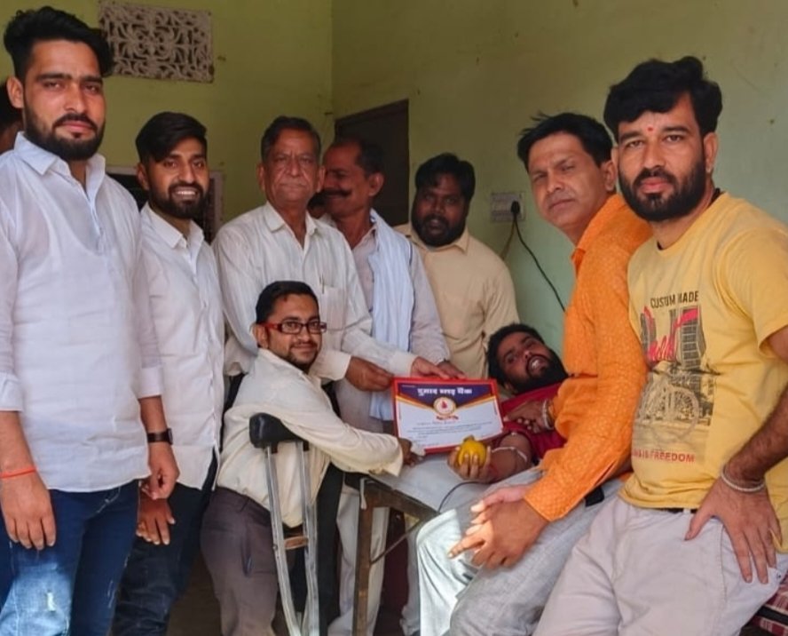चौमूं | शहर के टांकरड़ा बस स्टैंड, रैगर धर्मशाला में रविवार को जीवनदाता ग्रुप द्वारा रक्तदान शिविर का आयोजन हुआ। शिविर में विधायक रामलाल शर्मा, कांग्रेस कमेटी ओबीसी मोर्चा के प्रदेशाध्यक्ष हरसहाय यादव, प्रोफेशनल कांग्रेस कमेटी की प्रदेशाध्यक्ष रूक्ष्मणी कुमारी, पीसीसी सचिव शिखा मिल बराला, डॉ. रामनारायण यादव, राष्ट्रीय एससी एसटी विकास परिषद राजस्थान के प्रदेशाध्यक्ष जगदीश मीणा, भाजपा नेता डॉ. सुषमा यादव, कांग्रेस नेता छीगनलाल यादव, सरपंच प्रतिनिधि सुरेश सोढ, पहलवान चोपड़ा, पूर्व छात्रसंघ अध्यक्ष मेघराज चौधरी आदि अतिथियों का जीवनदाता ग्रुप के सदस्यों द्वारा माल, साफा पहनाकर एवं स्मृति चिन्ह देकर सम्मानित किया।