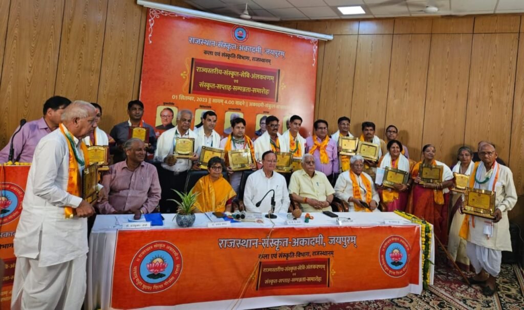 चौमूं | राजस्थान संस्कृत अकादमी जयपुर द्वारा आयोजित राज्यस्तरीय-संस्कृत सेवि अलंकरणम एवं संस्कृत सप्ताह संपन्नता समारोह में कला एवं संस्कृति विभाग के मंत्री डॉ. बी.डी. कल्ला, खादी ग्रामोद्योग बोर्ड राजस्थान के अध्यक्ष बृजकिशोर शर्मा, जगद्गुरु रामानंदाचार्य राजस्थान संस्कृत विश्वविद्यालय जयपुर के कुलपति प्रोफेसर रामसेवक दुबे, राजस्थान संस्कृत अकादमी जयपुर के अध्यक्ष डॉ. सरोज कोचर एवं राजस्थान संस्कृत अकादमी जयपुर के निदेशक डॉ. राजकुमार जोशी ने राजकीय शास्त्री संस्कृत महाविद्यालय चीथवाड़ी के प्राचार्य डॉ. कैलाश चंद्र बुनकर (मोरदिया) को राज्य स्तरीय संस्कृत सारस्वत विद्वत सम्मान से सम्मानित किया गया। डॉ. बुनकर ने राज्य स्तरीय पर सम्मान पाकर समाज, कॉलेज एवं क्षेत्र का नाम रोशन किया है। डॉ. बुनकर बलाई समाज का नाम अंकित करवा कर अनुसूचित जाति से सम्मानित होने वाले एकमात्र व्यक्ति है।