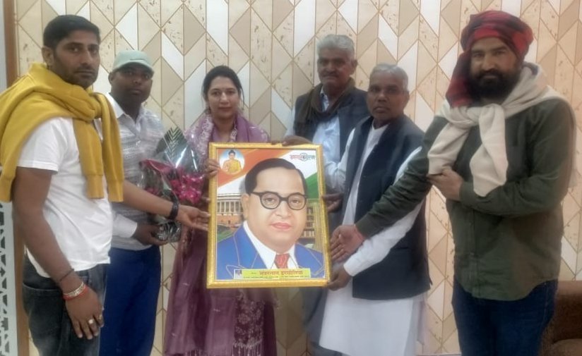 चौमूं | शहर के कचोलिया रोड स्थित कांग्रेस कार्यालय में नवनिर्वाचित विधायक डॉ. शिखा मील बराला को पुष्पगुच्छ एवं संविधान निर्माता डॉ. भीमराव अंबेडकर का छायाचित्र भेंट कर सम्मानित किया।