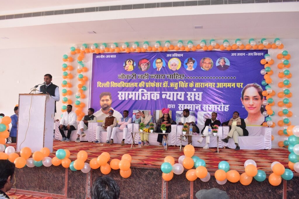 तारानगर | स्थानीय जाट धर्मशाला में आयोजित सामाजिक न्याय संघ के कार्यक्रम में मुख्य अतिथि के रूप में पहुंचीं दिल्ली विश्वविद्यालय की प्रो. ऋतु सिंह ने कहां कि जातिवाद गांवों से चलकर विश्वविद्यालय तक पहुंच गया और इसका परिणाम रोहित वैमुला ने शहादत देकर चुकाया है। उन्होंने जोर देकर कहां कि चाहे मनुवादी लोग कितना ही जोर लगा ले पर इस देश में जीत अंबेडकरवाद की होगी।