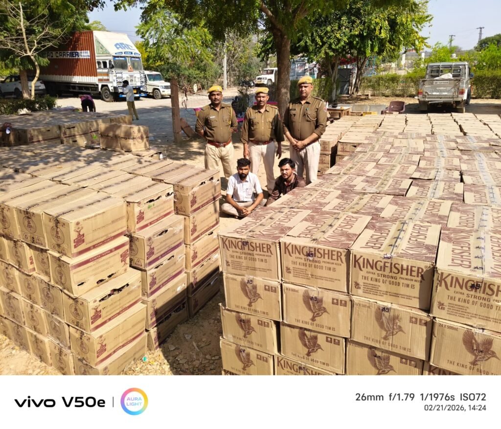 सरदारशहर। महानिरीक्षक बीकानेर रेंज बीकानेर द्वारा अवैध मादक पदार्थों के खिलाफ चलाये जा रहे विशेष अभियान की पालना में श्री जय यादव (आईपीएस) उप महानिरीक्षक पुलिस सह पुलिस अधीक्षक जिला चूरू के निर्देशानुसार श्री सुनील कुमार अतिरिक्त. पुलिस अधीक्षक चूरू, श्री कुलदीप वालिया आर पी एस वृताधिकारी वृत सरदारशहर के निकट सुपरविजन में दिनांक 21 फरवरी 2026 को श्री अरविन्दसिंह पुनि थानाधिकारी के नेतृत्व में पुलिस थाना भानीपुरा द्वारा डीएसटी चूरू व साईबर सैल के सहयोग से कार्यवाही करते हुए दौराने नाकाबन्दी थाना भवन के सामने मेगा हाईवे भानीपुरा पर पंजाब से अवैध शराब की तस्करी कर गुजरात की और ले जाते समय शराब तस्कर कृष्ण कुमार पुत्र खरताराम जाति जाट निवासी पोटलिया की ढाणी होडू पुलिस थाना सिणधरी जिला बालोतरा व अमराराम पुत्र किशनाराम जाति विश्नोई निवासी रावली नाडी तहसील गुढा मलानी पुलिस थाना नगर जिला बाडमेर को गिरफतार किया। शराब तस्कर के कब्जे से पंजाब निर्मित अवैध अग्रेजी शराब व बीयर के कुल 1425 कार्टून मय एक ट्रक नम्बर HR 45 B 4112 जब्त किया गया। इस संबंध में पुलिस थाना भानीपुरा में अ.स. 23/26 धारा 19/54, 54 (क) राजस्थान आबकारी अधिनियम में दर्ज कर अनुसंधान किया जा रहा है।