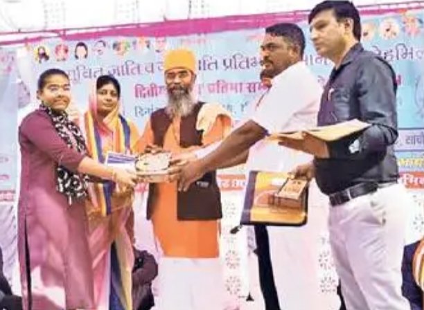 कार्यक्रम की शुरुआत अतिथियों की ओर से बाबा साहब डॉ. भीमराव अंबेडकर की तस्वीर पर पुष्पांजलि अर्पित करते हुए हुई। इस दौरान महंत गणेश नाथ महाराज ने प्रतिभाओं को संबोधित करते हुए कहा कि आप लोगों के कड़ी मेहनत लगन व सतत प्रयास से आप लोगों का आज जिस प्रकार से सामाजिक रूप से सम्मान हुआ है। वह जीवन में एक सुखदाई क्षण है। विद्यार्थी जीवन में जो अनुशासित रहकर अपने लक्ष्य की प्राप्ति के लिए निरंतर लगा रहता है। ईमानदारी पूर्वक अपने कर्तव्यों का निर्वहन करता है, उन्हें ही सफलता का श्रेय मिलता है। अतिरक्त पुलिस अधीक्षक जस्साराम बास ने छात्र-छात्राओं का हौसला बढ़ाते हुए कहा कि मन लगाकर पढ़ाई करें। अपना लक्ष्य तय करें और नियमित रूप से अध्ययन करें। कठिन मेहनत से मुकाम हासिल किया जा सकता है। डीवाईएसपी मांगीलाल राठौड़ ने युवाओं को नशे से दूर रहने की बात की।
