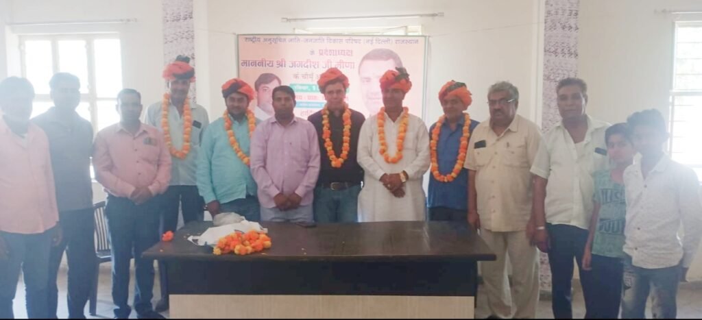 चौमूं | शहर के मोरीजा रोड़ कांग्रेस कार्यालय, गोठवाल भवन में रविवार को राष्ट्रीय अनुसूचित जाति-जनजाति विकास परिषद जयपुर के जिला महासचिव सुरेन्द्र सिंह हरसोलिया के नेतृत्व में राष्ट्रीय अनुसूचित जाति जनजाति विकास परिषद राजस्थान के प्रदेशाध्यक्ष जगदीश मीणा एवं इनके साथ सुरेंद्र मीणा, पत्रकार जगदीश सेन, बैंक मैनेजर आशीष मीणा व गजानंद जांगिड़ का माला एवं साफा पहनाकर स्वागत सम्मान किया।