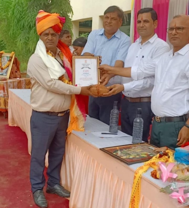 सभी अतिथियों ने प्रधानाचार्य डॉ. धर्मराज को शॉल, साफा, श्रीफल, प्रशस्ति पत्र व 51 सौ रूपये का चैक भेंट कर सम्मानित किया
