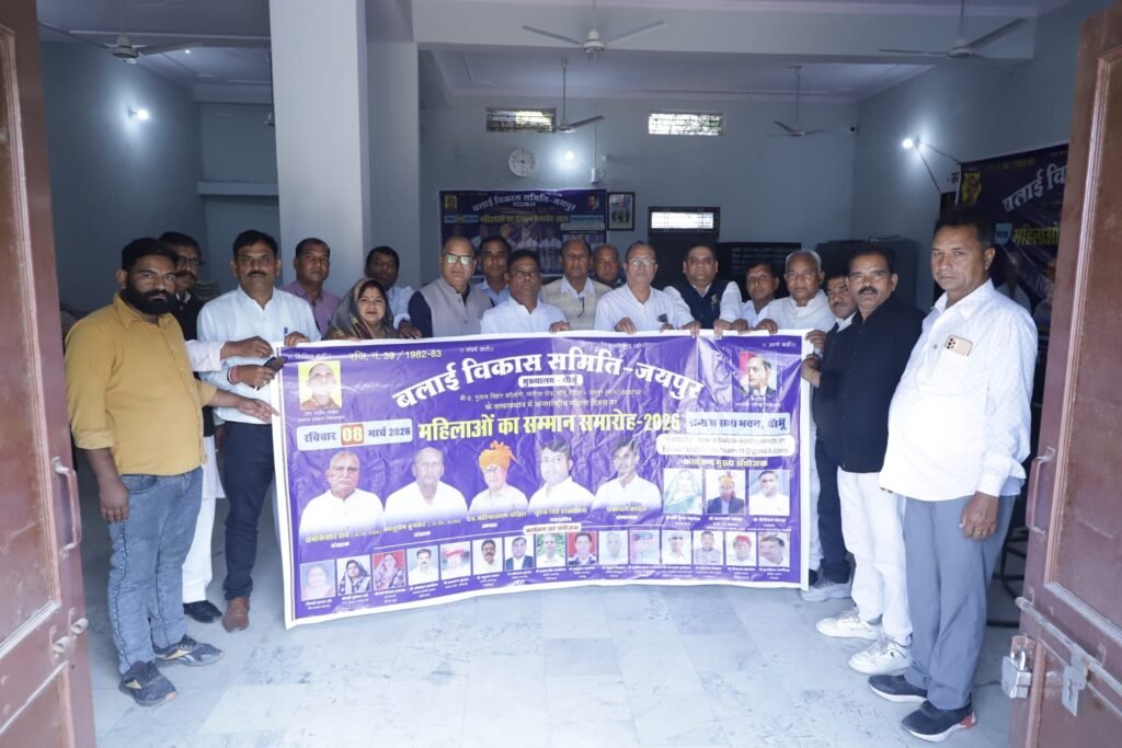चौमूं (सुरेन्द्र सिंह हरसोलिया)। शहर के मोरीजा रोड स्थित बलाई समाज सभा-भवन पर रविवार को बलाई विकास समिति जयपुर, मुख्यालय-चौमूं के अध्यक्ष एडवोकेट बद्रीनारायण परिहार की अध्यक्षता में बैठक आयोजित हुई।