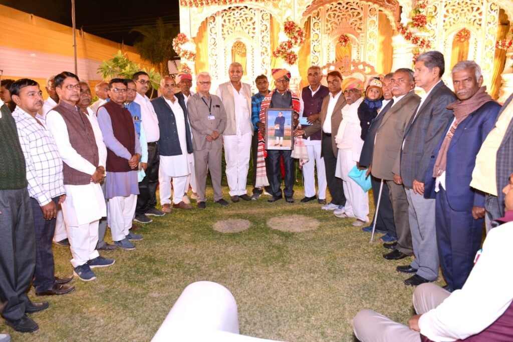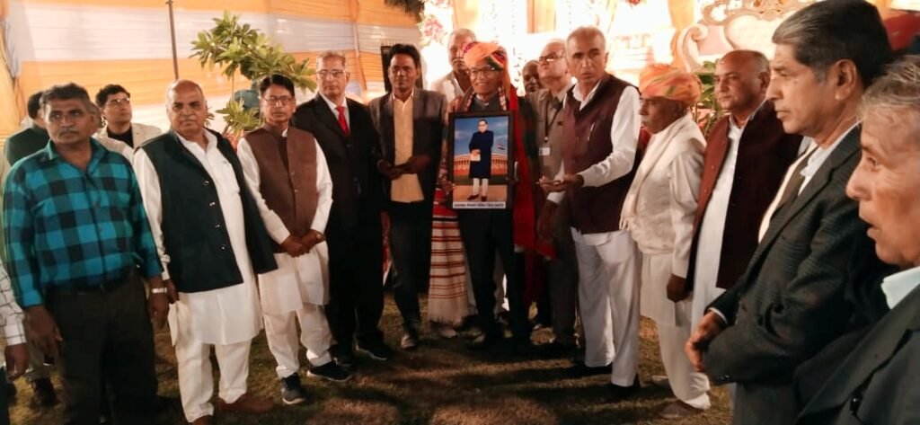 बाड़मेर टीम द्वारा नारायण चौहान का बाड़मेरी पट्टू, साफा व बाबा साहेब डॉ भीमराव अंबेडकर की तस्वीर भेंट कर अपनी उपस्थिति को चिर स्थायी बनाया।