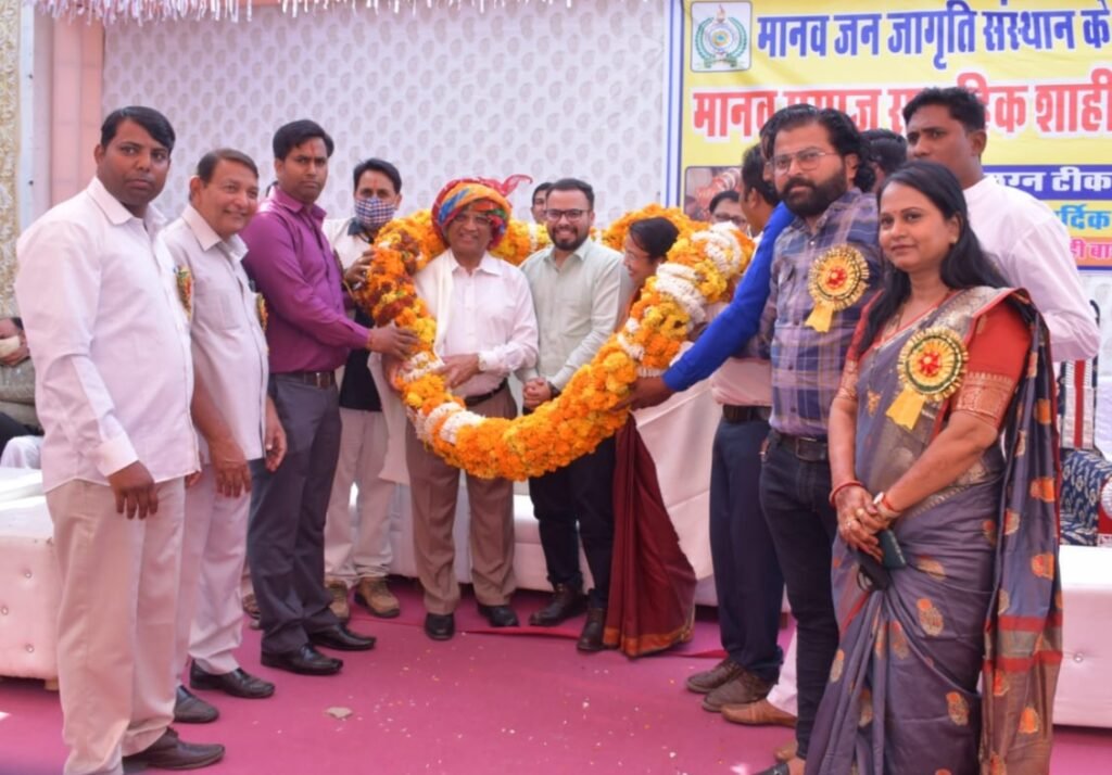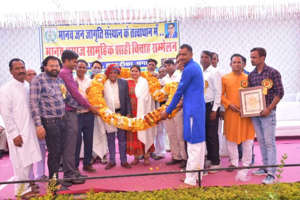 चौमूं। कचौलिया रोड शाही बाग गार्डन में मानव जन जागृति संस्थान के द्वारा मानव समाज (सर्व समाज) के 31 जोड़ों की सगाई, लग्न-टीका व अंगुठी रस्म समारोह श्री श्री 108 ओमदास जी महाराज पीठाधीश्वर सांगलिया धूणी सीकर के सानिध्य में‌ सम्पन्न हुआ। समारोह के मुख्य अतिथि राजस्थान नर्सिंग होम के निदेशक डा. ओमप्रकाश धमोड थे एवं अध्यक्षता दा न्यू इंडिया इंश्योरेंस कारपोरेशन लिमिटेड के वरिष्ठ मंडल प्रबंधक शंकरलाल कुलदीप ने की।