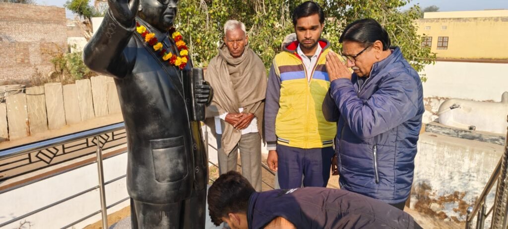तत्पश्चात संविधान निर्माता बाबा साहेब डॉ भीमराव अम्बेडकर जी की प्रतिमा पर माल्यार्पण कर पुष्प अर्पित किए।