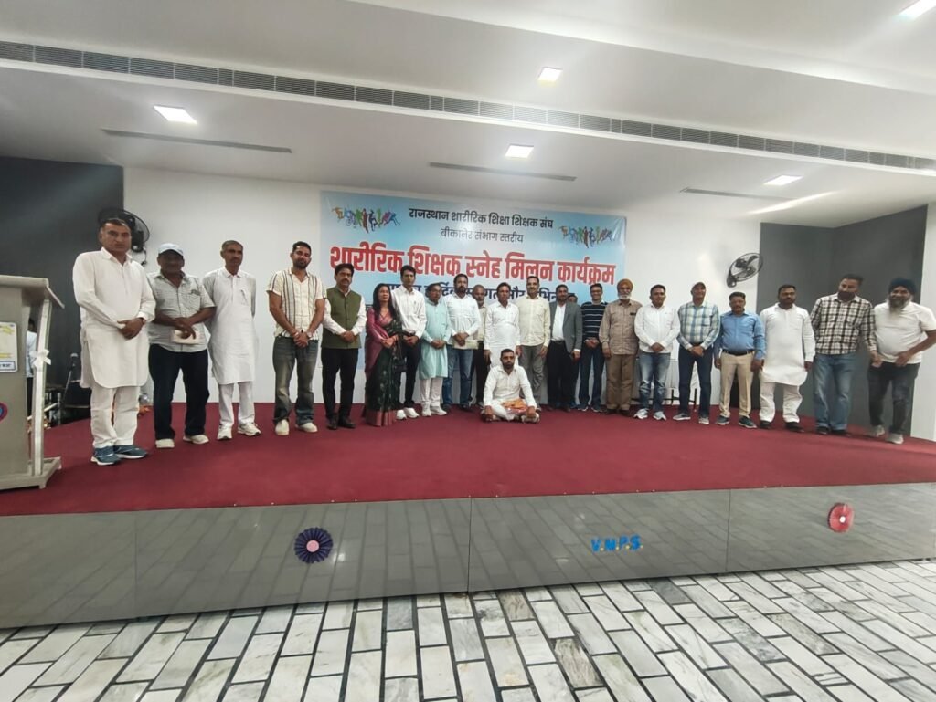 हनुमानगढ । राजस्थान शारीरिक शिक्षा शिक्षक संघ का बीकानेर संभाग स्तरीय शारीरिक शिक्षा स्नेह मिलन कार्यक्रम जिला हनुमानगढ़ के VM पब्लिक स्कूल, हनुमानगढ़ टाउन में 21 मार्च को आयोजित किया गया। कार्यक्रम के मुख्य अतिथि प्रमोद डेलू, जिलाध्यक्ष भारतीय जनता पार्टी थे और अध्यक्षता बालकृष्ण, अध्यक्ष, व्यापार मंडल, हनुमानगढ़ ने की। कार्यक्रम में विशिष्ट अतिथि श्रवण बिश्नोई और श्रीमती भावना चौधरी कार्यकारी प्रदेशाध्यक्ष, नवदीप शर्मा, प्रदेश महामंत्री, रामलाल जाखड़, प्रदेश वरिष्ठ उपाध्यक्ष, मंजीत चौधरी, प्रदेश संयुक्त मंत्री, हरप्रीत सिंह और पुरुषोत्तम