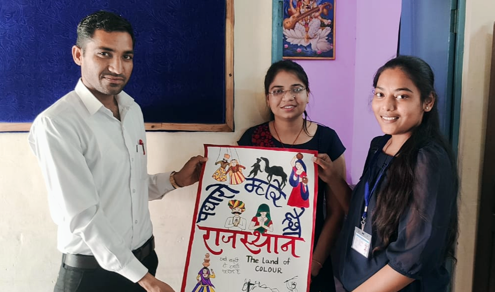 सरदारशहर | सेठ बुधमल दुगड़ राजकीय स्नातकोत्तर महाविद्यालय में, एम एससी प्रवेश वनस्पति शास्त्र विभाग की छात्रा दीक्षा जेसनसरिया ने “राजस्थान स्थापना दिवस” पर बोटेनिकल सोसाइटी की सचिव होने के नाते, सोसाइटी की तरह से पेंटिग, सहायक आचार्य अशोक कुमार मेघवाल और भानुप्रिया सूंडा के माध्यम से विभाग प्रभारी अमरचंद कुमावत और महाविद्यालय प्राचार्य डॉ. वी के स्वामी को भेंट की।