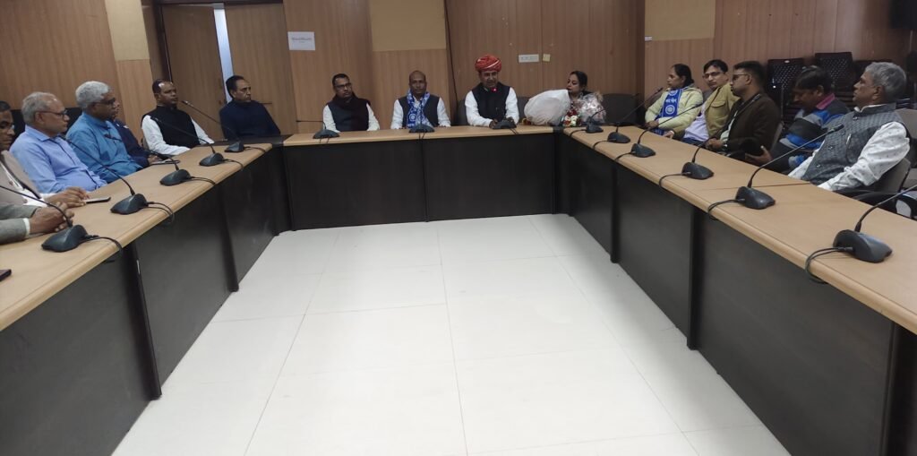जयपुर (सुरेन्द्र सिंह हरसोलिया)। देश के आरक्षित वर्ग के हितों के लिए संगठन के लोगों को राष्ट्रीय अध्यक्ष राष्ट्रीय अनुसूचित जाति जनजाति विकास परिषद जयपुर के झालाना स्थित अंबेडकरआगे आना पड़ेगा प्रवीण मांगरिया राष्ट्रीय अध्यक्ष राष्ट्रीय अनुसूचित जाति जनजाति विकास परिषद जयपुर के झालाना स्थित अंबेडकर वेलफेयर सोसाइटी के सभागार में आयोजित राजस्थान प्रदेश राष्ट्रीय अनुसूचित जाति जनजाति विकास परिषद की मीटिंग में प्रदेश पदाधिकारीयो को संबोधित करते हुए यह बात राष्ट्रीय अध्यक्ष प्रवीण मांगरिया ने कही। कार्यक्रम की अध्यक्षता करते हुए प्रदेश कांग्रेस सचिव एवं राष्ट्रीय अनुसूचित जाति जनजाति विकास परिषद राजस्थान के अध्यक्ष जगदीश मीणा ने कहा कि संगठन के सभी साथी पूरे प्रदेश में एकजुट होकर संविधान द्वारा दिए गए आरक्षण की रक्षा के लिए अभियान चला कर कार्य कर रहे हैं। समस्त 41 जिलों में संगठन की कार्यकारिणी का विस्तार कर लिया गया है एवं आने वाले वक्त में देश एवं प्रदेश की सरकारों से जनसंख्या के आधार पर आरक्षण दिलवाने का मांग पत्र दिया जाएगा। देश एवं प्रदेश की सरकार द्वारा बैकलॉग में खाली सीटों को भरवाने के लिए आंदोलन चलाया जाएगा।