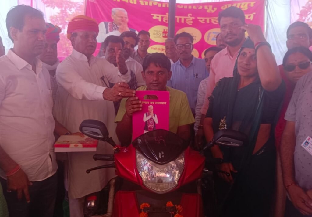 चौमूं | रोजदा ग्राम पंचायत में राज्य सरकार की योजना महंगाई राहत कैंप का आयोजन हुआ। शिविर प्रभारी रामचंद्र मीणा ने बताया कि परिवारों को राज्य सरकार की अलग-अलग योजनाओं का रजिस्ट्रेशन करवाया गया। शिविर में मोहनलाल यादव निशक्त को स्कूटी वितरित की गई। साथ ही आंगनबाड़ी केंद्र हरचंदपुरा को सौगात दी गई तथा रोजदा व सरदारपुरा के आंगनबाड़ी केंद्रों के भूमि आवंटन पत्र वितरित किए गए। स्थाई व अस्थाई कैंप में कुल 1368 परिवारों ने रजिस्ट्रेशन करवाया।