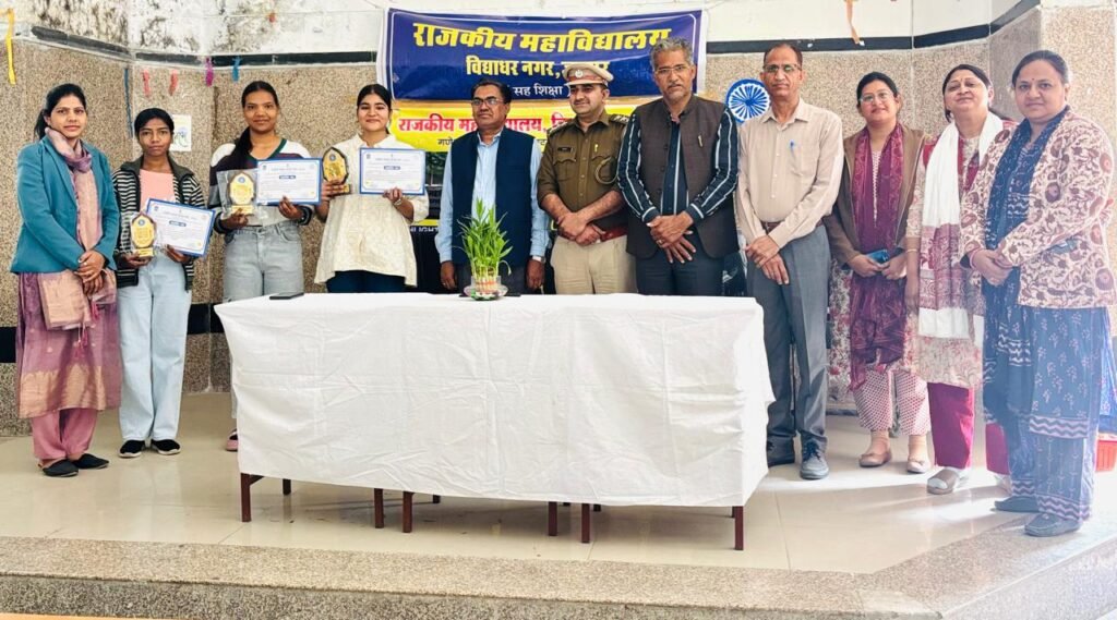 जयपुर (सुरेन्द्र सिंह हरसोलिया)। राजकीय महाविद्यालय विद्याधर नगर, जयपुर में राष्ट्रीय सड़क सुरक्षा माह (शून्य मृत्यु माह) के तहत ‘सीख से सुरक्षा, टेक्नोलॉजी से परिवर्तन’ थीम पर प्रभारी प्राचार्य डॉ. प्रहलाद सहाय बुनकर की अध्यक्षता में विभिन्न कार्यक्रमों के क्रम में सड़क सुरक्षा जीवन रक्षा विषयक प्रतियोगिता में विजित प्रतिभागियों को आरटीओ इंस्पेक्टर श्रीचंद ढाका व राजकीय मूक बधिर कॉलेज के एसोसिएट प्रोफेसर डॉ. सोहनलाल के आतिथ्य में पुरस्कार वितरण किया गया।