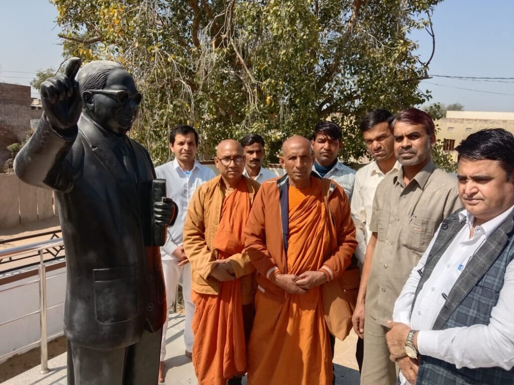 सर्वप्रथम पुज्य बाबा साहेब डॉ भीमराव अम्बेडकर जी की प्रतिमा के समक्ष भंते जी ने पुष्प अर्पित किए।