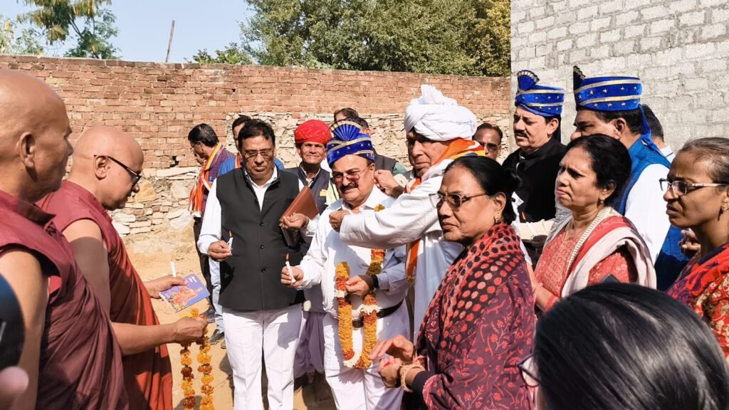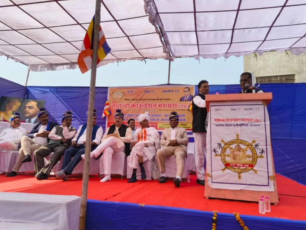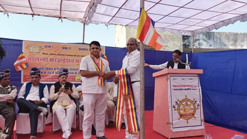 जयपुर | नालंदा फाऊंडेशन मरुधरा जयपुर के तत्वावधान में रविवार को ‘नालंदा विहार व शैक्षणिक संस्थान’ का शिलान्यास कार्यक्रम व 75 वे संविधान दिवस के उपलक्ष मे समारोह’ आयोजित हुआ। दीप प्रज्वलित व उद्धघाटन भिख्खु लोक पाल नाग भरतपुर व संस्थापक बृज फाऊंडेशन मथुरा ने किया, त्रिशरण पंचशील दिया। मुख्य अतिथि के.सी .घुमरिया रिटायर्ड आईआरएस तथा प्रदेशाध्यक्ष अखिल भारतीय आदिवासी विकास परिषद (राज) थे।