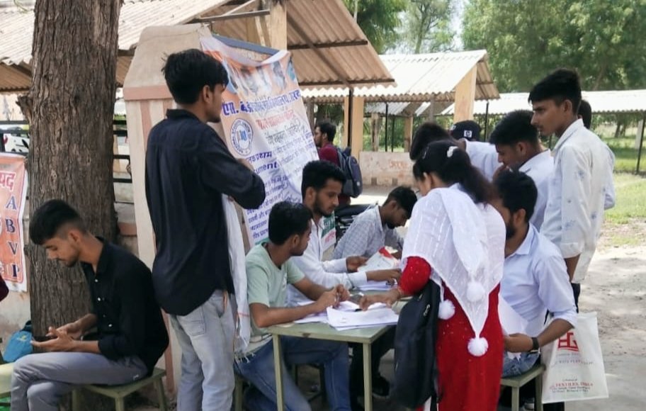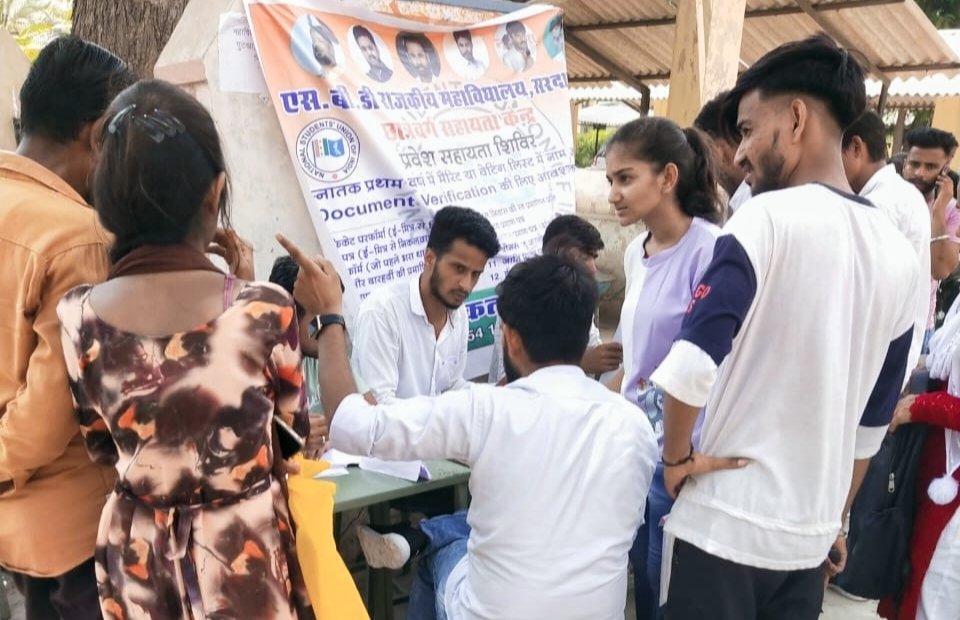 सरदारशहर | राजकीय एसबीडी पीजी महाविद्यालय में सोमवार दूसरे दिन एनएसयूआई के बैनर तले छात्रवर्ग के लिए सहायता केन्द्र शिविर लगाकर प्रथम वर्ष के प्रवेश फ़ॉर्म जमा करवाने आने वाले छात्र-छात्राओं के सहयोग के लिए उपस्तिथ रहे।