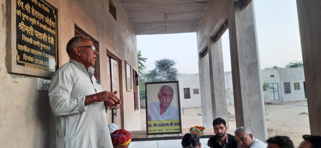 सरदारशहर | स्वतंत्रता सेनानी, किसानों व मजदूरों की आवाज, वरिष्ठ राजनेता, चूरू जिले के प्रथम जिला प्रमुख एवं पांच बार विधायक रहे स्वर्गीय रावतराम आर्य की प्रथम पुण्यतिथि पुण्यतिथि मीणा गेस्ट हाउस सरदारशहर में मनाई। कार्यक्रम में जिला प्रमुख प्रतिनिधि मोहन लाल आर्य की अध्यक्षता में आयोजित हुई।