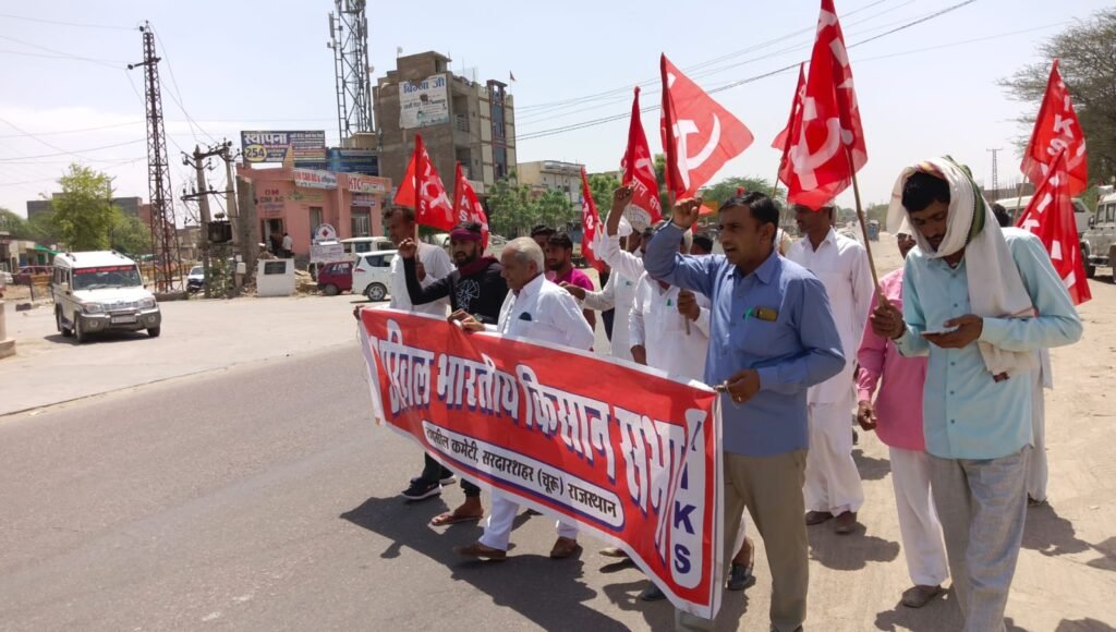 सरदारशहर | अखिल भारतीय किसान सभा चूरू के जिलाव्यापी आव्हान पर सभा के राज्य महामंत्री छगनलाल चौधरी के नैतृत्व में रविार को किसानों ने किसानों के हितों की विभिन्न्न मांगो को लेकर दोपहर 11.30 से 12 बजे तक 30 मीनट तक मेगा हाईवे पर जाम लगाया गया।