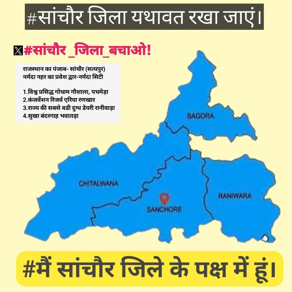 जयपुर | राजस्थान में गहलोत सरकार द्वारा गठित 19 नए जिलों में बनाएं गए हैं लेकिन हाल ही दिनों में बीजेपी प्रदेशाध्यक्ष मदन राठौड़ द्वारा नवगठित सांचौर जिले सहित नवगठित जिलों को रद्द और पुराने जिले में मर्ज करने का संकेत दिया हैं और सरकार द्वारा रिव्यू कमेटी के गठन भी किया हैं उससे पहले प्रदेशाध्यक्ष के बयान से क्षेत्रवासियों में चिंता और विरोध का माहौल है।