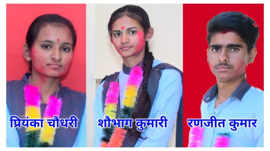 जिसमें विद्यालय स्तर पर प्रथम स्थान प्रियंका चौधरी ने 91.80 प्रतिशत अंक व द्वितीय स्थान सौभाग कुमारी ने 81.60 प्रतिशत अंक व तृतीय स्थान पर रणजीत कुमार 79.80 प्रतिशत अंक व मीना कुमारी ने 77.60 प्रतिशत अंक, पार्वती कुमारी 75.40 प्रतिशत अंक, प्रवीण कुमार ने 70.40 प्रतिशत, अशोक कुमार ने 70 प्रतिशत अंक अर्जित कर अपने विद्यालय व गांव सहित सांचौर जिले का नाम रोशन किया हैं।
