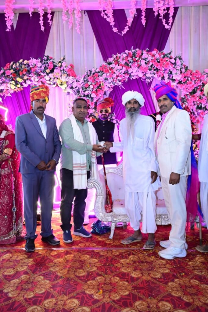 जैसलमेर । भानु सेवा संस्थान के संरक्षक एवं राजकीय उच्च माध्यमिक विद्यालय दव जिला जैसलमेर में कार्यरत अध्यापक दमाराम मेघवाल ने अपने सुपुत्र कमलेश कुमार का विवाह सामाजिक सरोकार और सादगी के साथ सम्पन्न कर एक प्रेरणादायक मिसाल पेश की।