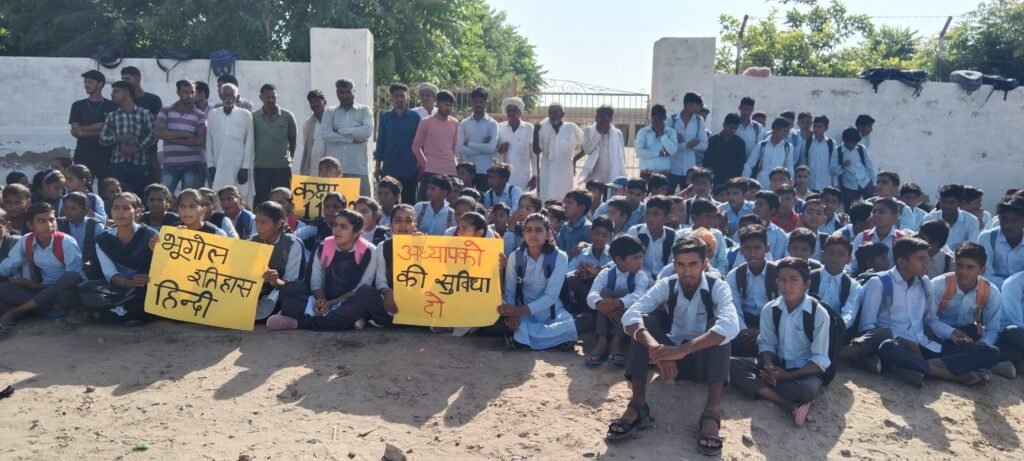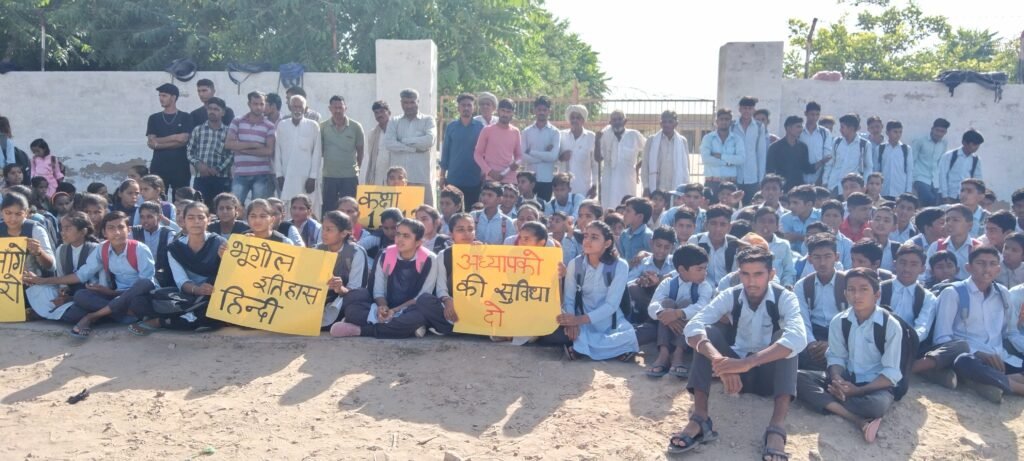 बिल्यूं बास रामपुरा स्कूल में 320 विद्यार्थीयों पर है 7 शिक्षक, विद्यार्थी और ग्रामीणों ने लगाया स्कूल के मुख्य गेट पर ताला, रिक्त पड़े 9 पदों को भरने की मांग