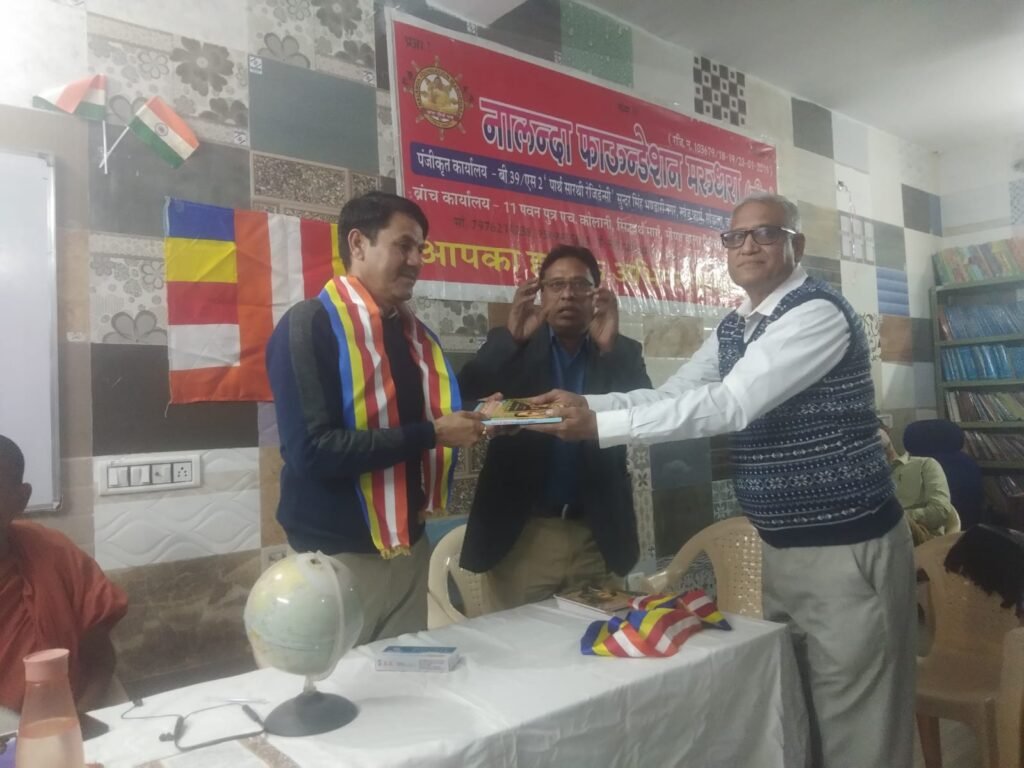 जयपुर | नालंदा फाउंडेशन मरूधरा जयपुर के तत्वावधान में संविधान दिवस समारोह पर एक परिचर्चा ‘संविधान और बाबा साहब का योगदान तथा संविधान का संरक्षण’ 34 ए मीनावाला सिरसी रोड सेंटर जयपुर पर आयोजित हुई। जिसमें सानिध्य भंते विनय पाल सीकर का रहा व अध्यक्षता मदन लाल दूदवाल सेवानिवृत्त उपायुक्त कर विभाग ने की। मुख्य अतिथि वयोवृद्ध समाज सेवी रामेश्वर सेवार्थी थे एवं विशिष्ट अतिथि भगवान सहाय जाटवा, सचिव कृषि विभाग सीकर थे ।