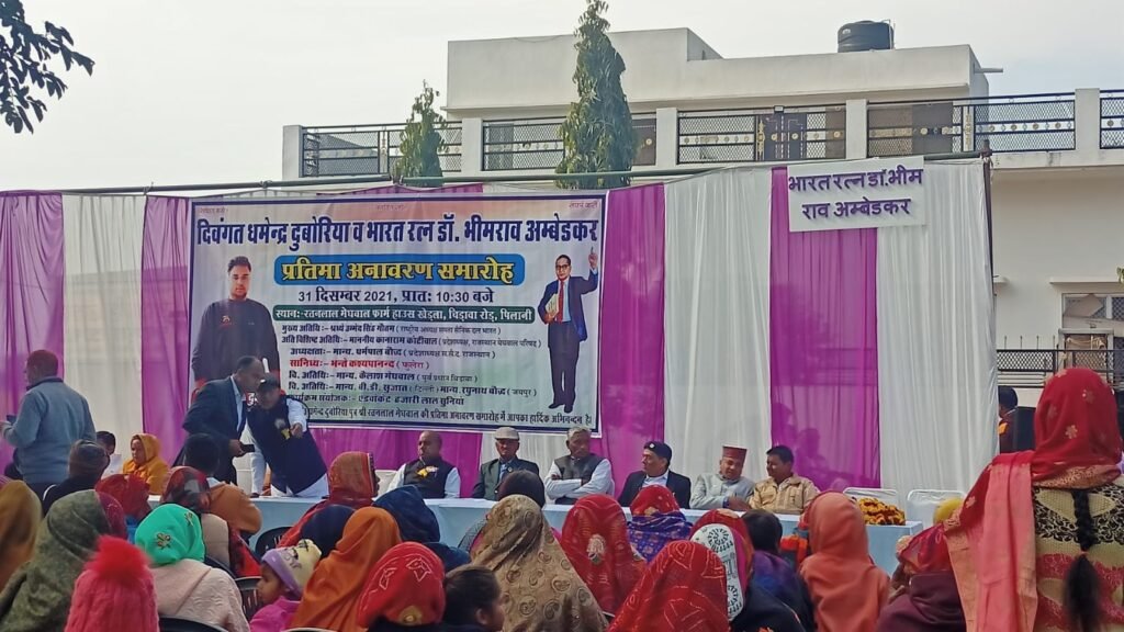 झुंझुनूं | भारतीय संविधान के निर्माता, विश्वरतन बाबा साहेब डॉ. भीमराव अंबेडकर की आदमकद प्रतिमा का अनावरण आज 31 दिसंबर 2021 को प्रातः 10:30 बजे रतनलाल मेघवाल फार्म हाउस- पिलानी,(झुंझुनू) राजस्थान में समारोह के साथ सम्पन्न हुआ। कार्यक्रम के मुख्य अतिथि माननीय उम्मेद सिंह गौतम, राष्ट्रीय कार्य अध्यक्ष समता सैनिक दल, राष्ट्रीय मुख्यालय डॉ. अंबेडकर भवन, नई दिल्ली रहे।