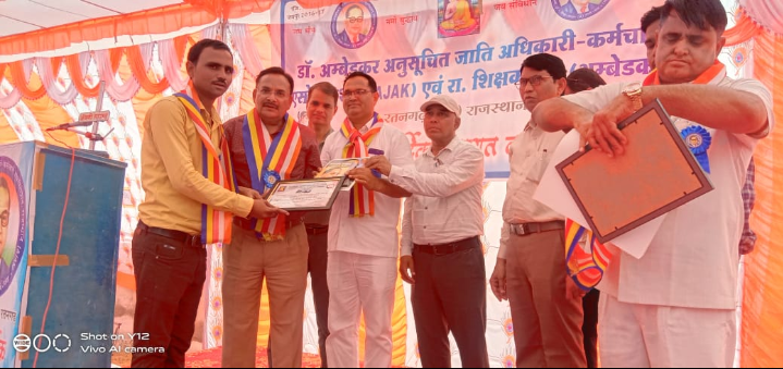 स्वागत उद्बोधन अजाक अध्यक्ष अशोक आलड़िया ने शाब्दिक स्वागत किया । कार्यक्रम में 18 आईआईटी व नीट, 8 राज्य व राष्ट्रीय स्तर के खिलाड़ी, सेवानिवृत्त कर्मचारी 52, नवनियुक्त कर्मचारियों का पंचशील पहनाकर, प्रशस्ति प्रमाण पत्र व बाबासाहेब अम्बेडकर लाइव एंड मिशन पुस्तक भेंट कर अभिनंदन किया गया।