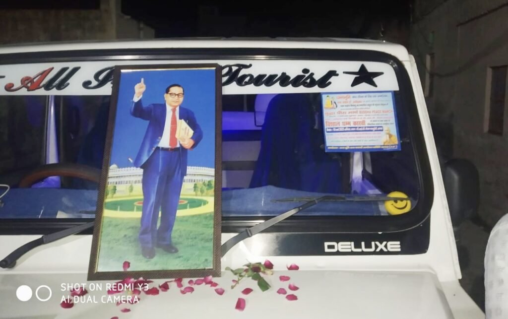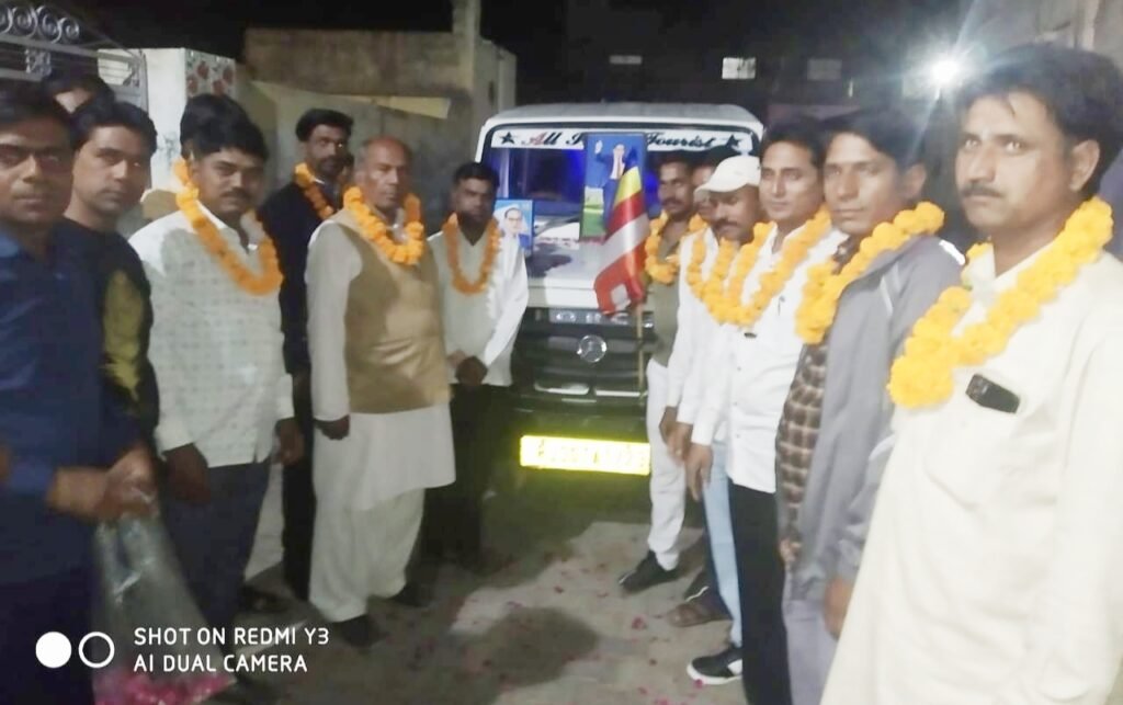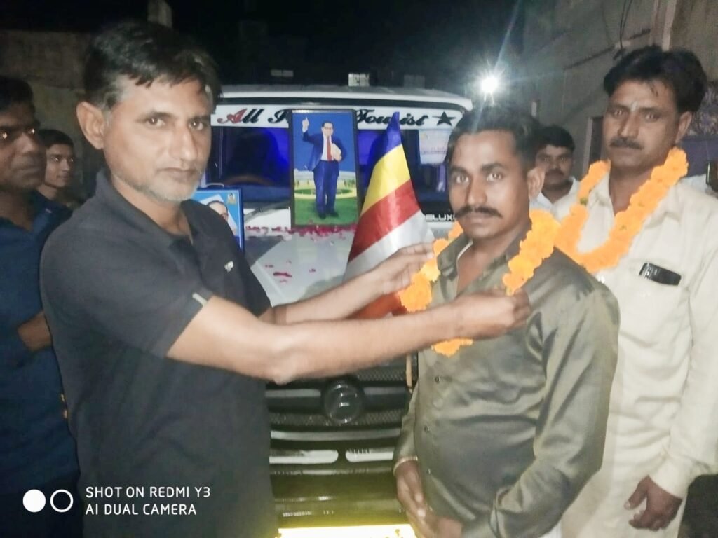 रवानगी के दौरान सर्व प्रथम संविधान निर्माता बाबा साहेब डॉ. भीमराव अम्बेडकर के चित्र पर पुष्प अर्पित कर आगरा जाने वाले मिशनरी साथियों को माला पहनाकर उन्हें रतनगढ़ से प्रस्थान किया।