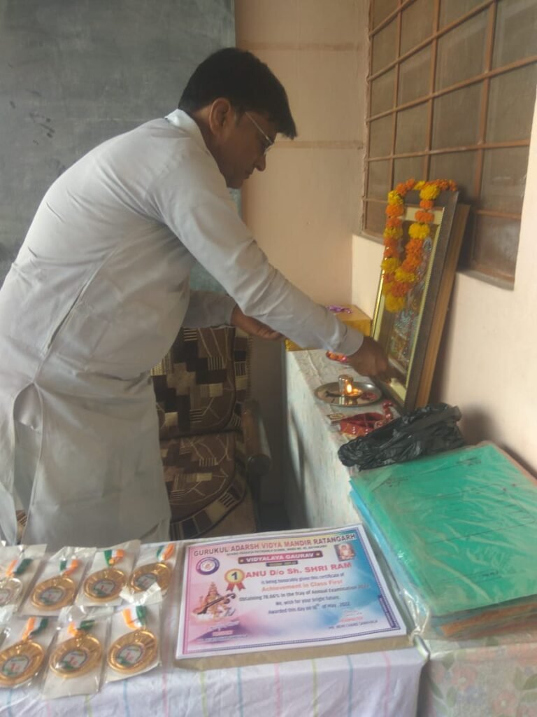 जिसमें गृह परीक्षा परिणामों में कक्षा स्तर पर प्रथम को प्रशस्ति पत्र व गोल्ड मेडल, द्वितीय को प्रशस्ति पत्र व सिलवर मेडल, तृतीय स्थान प्राप्त करने वाले छात्र-छात्राओं को प्रशस्ति पत्र व ब्रोंज मेडल देकर पुरस्कृत किया गया। प्रथम कक्षा में अनु, द्वितीय कक्षा में उमेश कुमार, तृतीय कक्षा में उर्मिला, चतुर्थ कक्षा में प्राची रेगर षष्ठी कक्षा में भरत रेगर, सप्तमी कक्षा में चंचल चावला ने प्रथम स्थान प्राप्त किया।