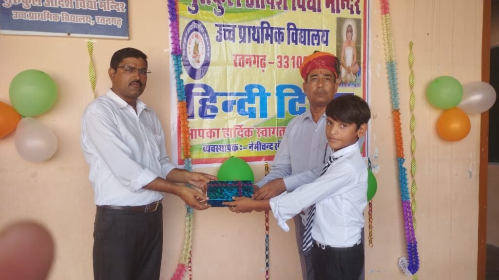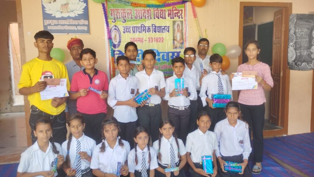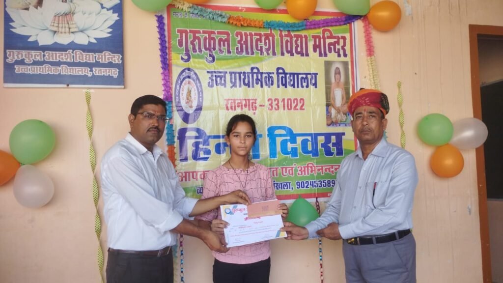 रतनगढ़ | गुरुकुल आदर्श विद्या मंदिर रतनगढ़ में हिंदी दिवस का आयोजन प्रो. कल्याणसिंह चारण, प्राचार्य राजकीय जालान महाविद्यालय रतनगढ़ के मुख्य आतिथ्य में किया गया जिसमें विभिन्न प्रतियोगिताओं का आयोजन किया गया।