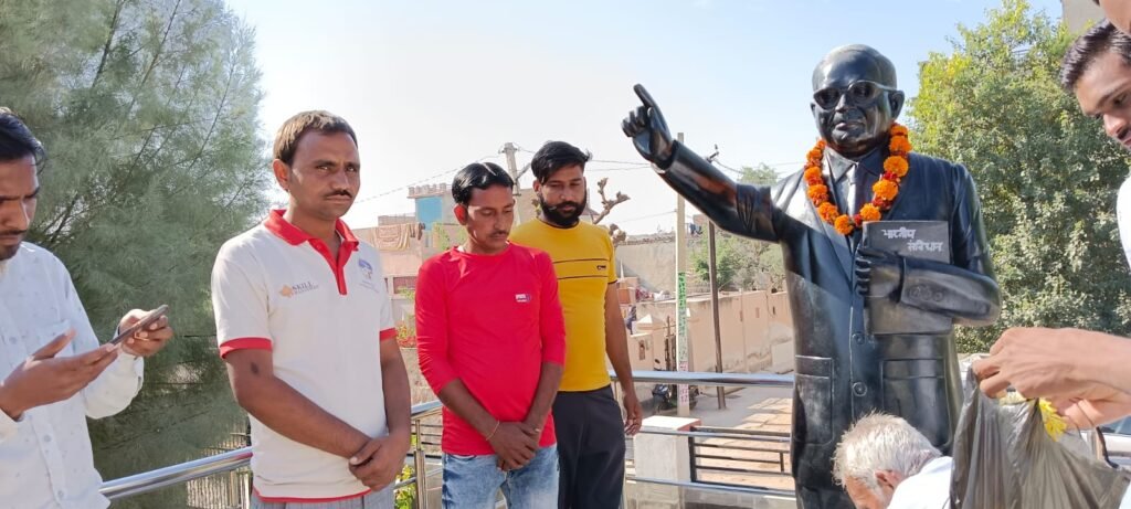 रतनगढ़ | कस्बे के मेघवाल गेस्ट हाउस भीमनगर में संविधान दिवस समारोह मनाया गया। जिसकी अध्यक्षता धन्नाराम बालाण ने की। सर्व प्रथम संविधान निर्माता बाबा साहेब डॉ भीमराव अम्बेडकर की प्रतिमा पर माल्यार्पण कर पुष्पांजलि अर्पित की। कार्यक्रम के विशिष्ट अतिथि खिराज पार्षद ने संविधान के बारे में जानकारी दी।