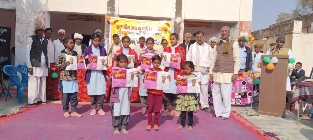 सरदारशहर | उपखंड क्षेत्र के गांव बिल्यूं बास रामपुरा के राजकीय बालिका उच्च माध्यमिक विद्यालय में शनिवार को सरपंच शीशपाल सिहाग की अध्यक्षता में राज्य सरकार द्वारा लागू की गई निशुल्क यूनिफार्म वितरण योजना के तहत पोशाक वितरित की गई। विद्यालय में भामाशाह है और पूर्व छात्र छात्राओं का सम्मान व वार्षिकोत्सव ‘सरगम-2023’ भी का आयोजन किया गया। जिसमें विद्यालय के विद्यार्थियों ने सांस्कृतिक प्रस्तुतियां पेश की।